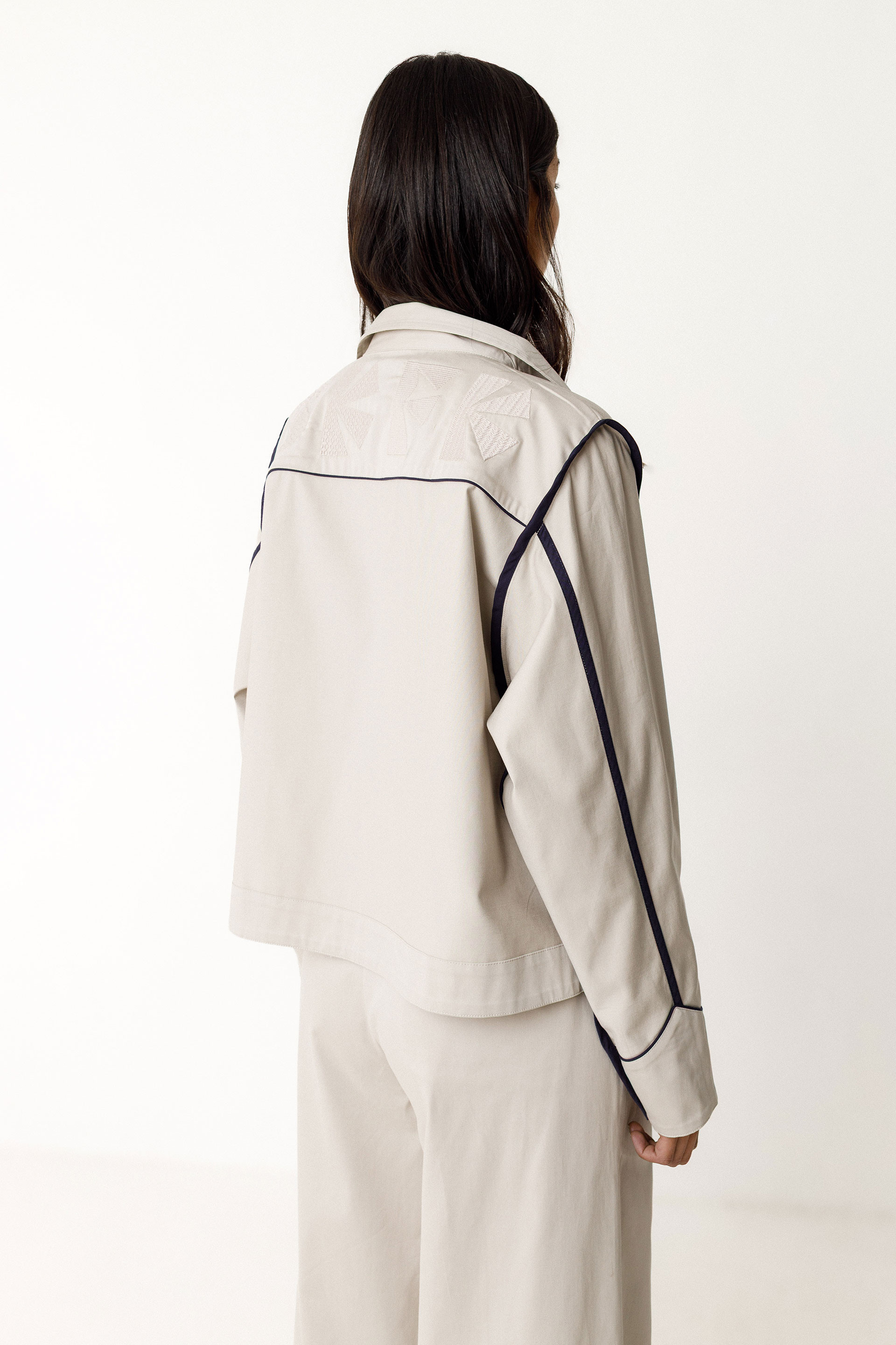 Ample veste réversible avec un col classique ainsi que des poches plaquées et une fermeture zippée sur l’avant.