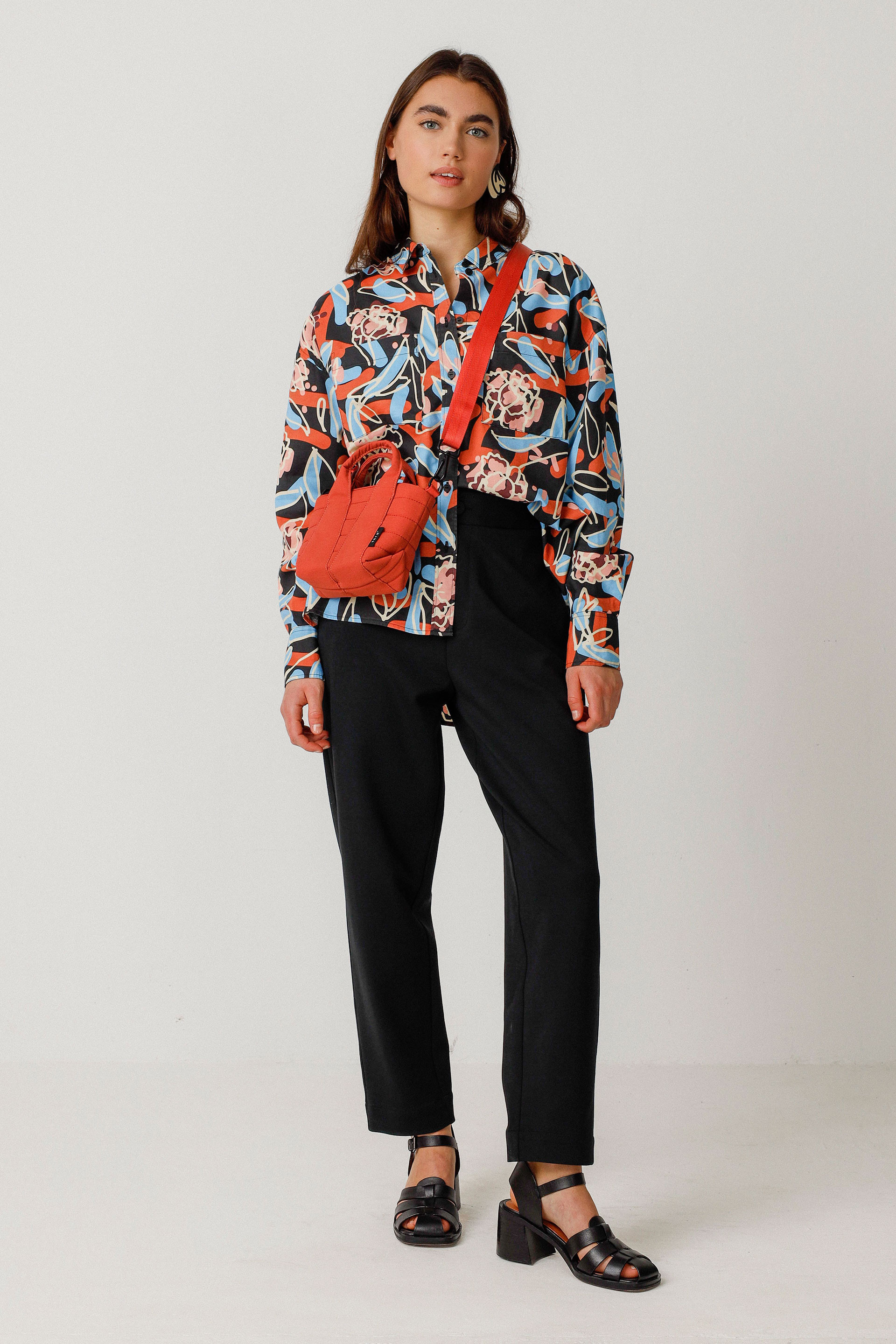 Sac en polyester recyclé avec une sangle ajustable et amovible, une poche intérieure zippée et une doublure imprimée. Dimensions 200 x 140 x 80 mm.