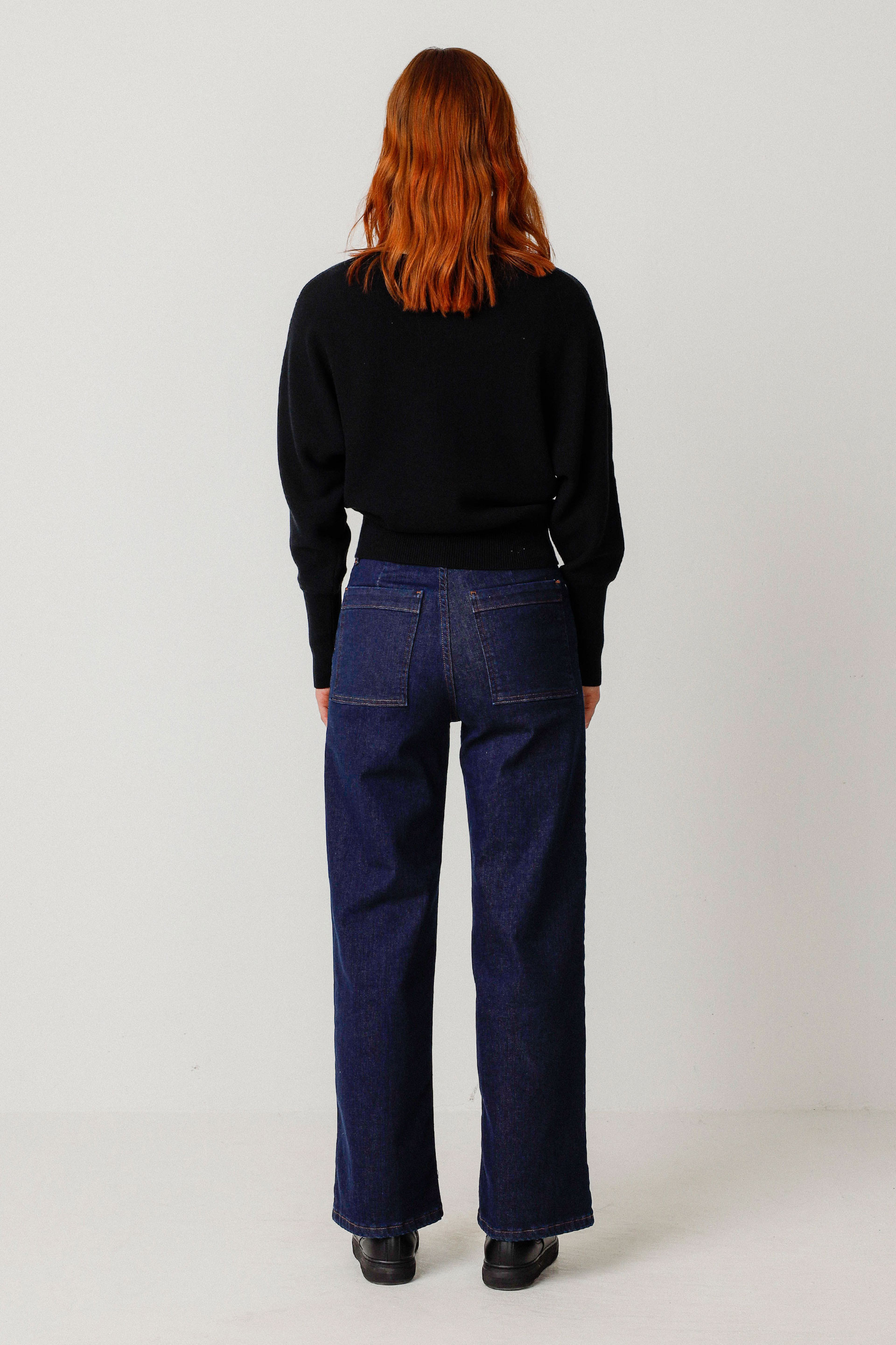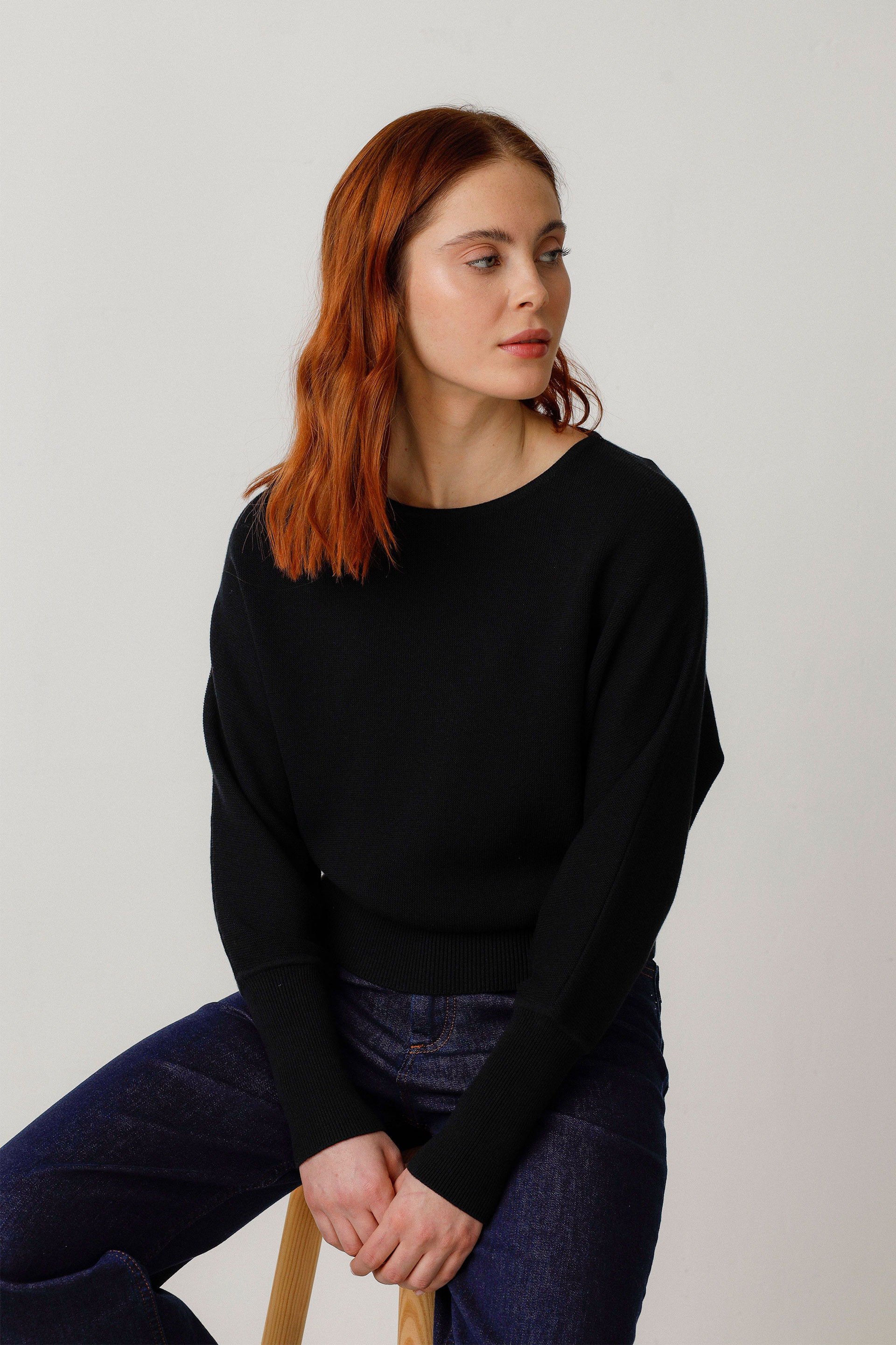 Pull en point mousse avec un col rond et des manches dolman. Une option confortable pour les moments décontractés. Coton biologique certifié GOTS.