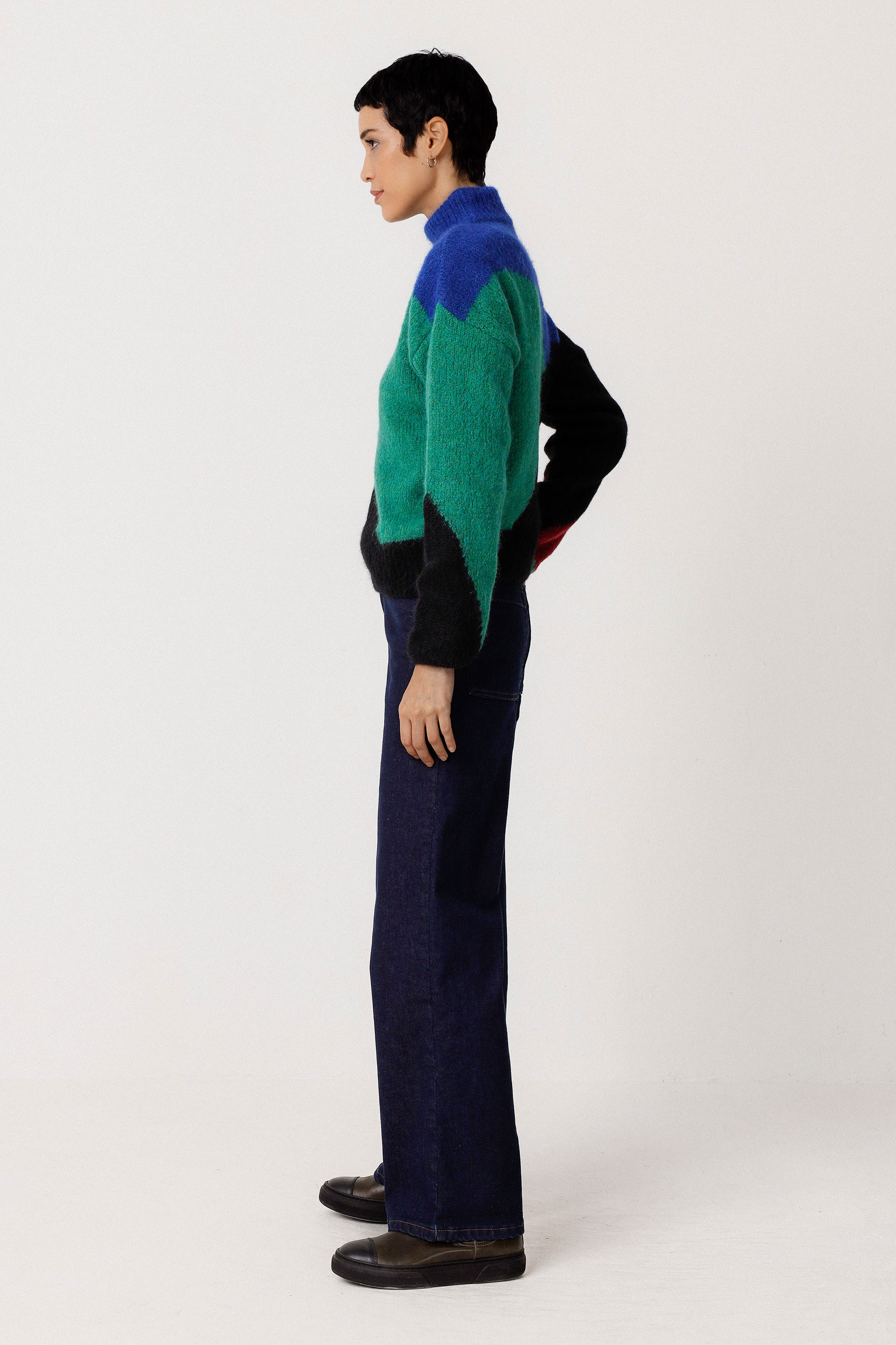 Pull en tricot premium avec un petit col rond. Composé de matières partiellement recyclées et affichant une finition à poil long, il est confectionné au Portugal. Un toucher incroyablement doux et une conception écoresponsable.