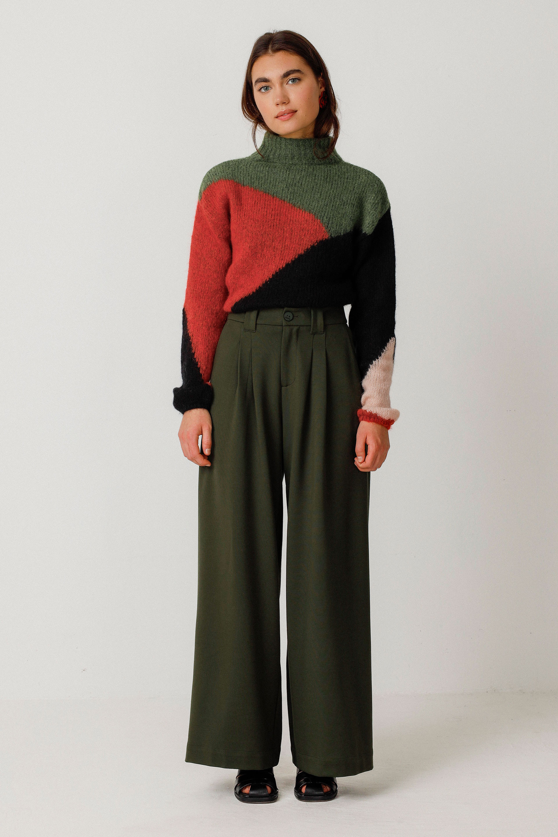 Pantalon palazzo avec une taille classique, des poches en biais et une fermeture zippée devant. Sa coupe originale dessine une silhouette élégante.