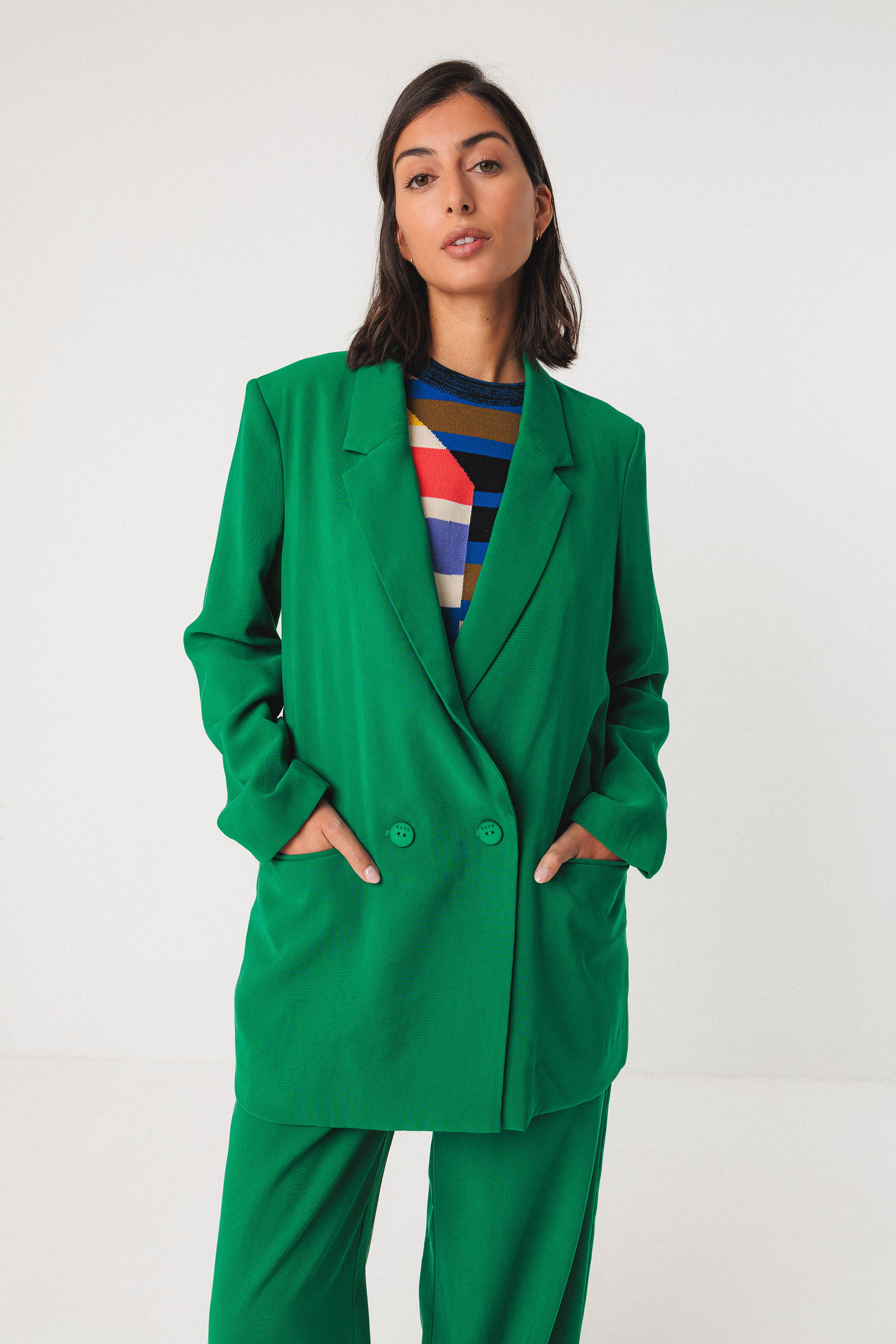 Longue veste blazer à manches longues et coupe droite, avec un col à revers. Boutonnée devant, elle présente des poches sur l’avant et une doublure intégrale.