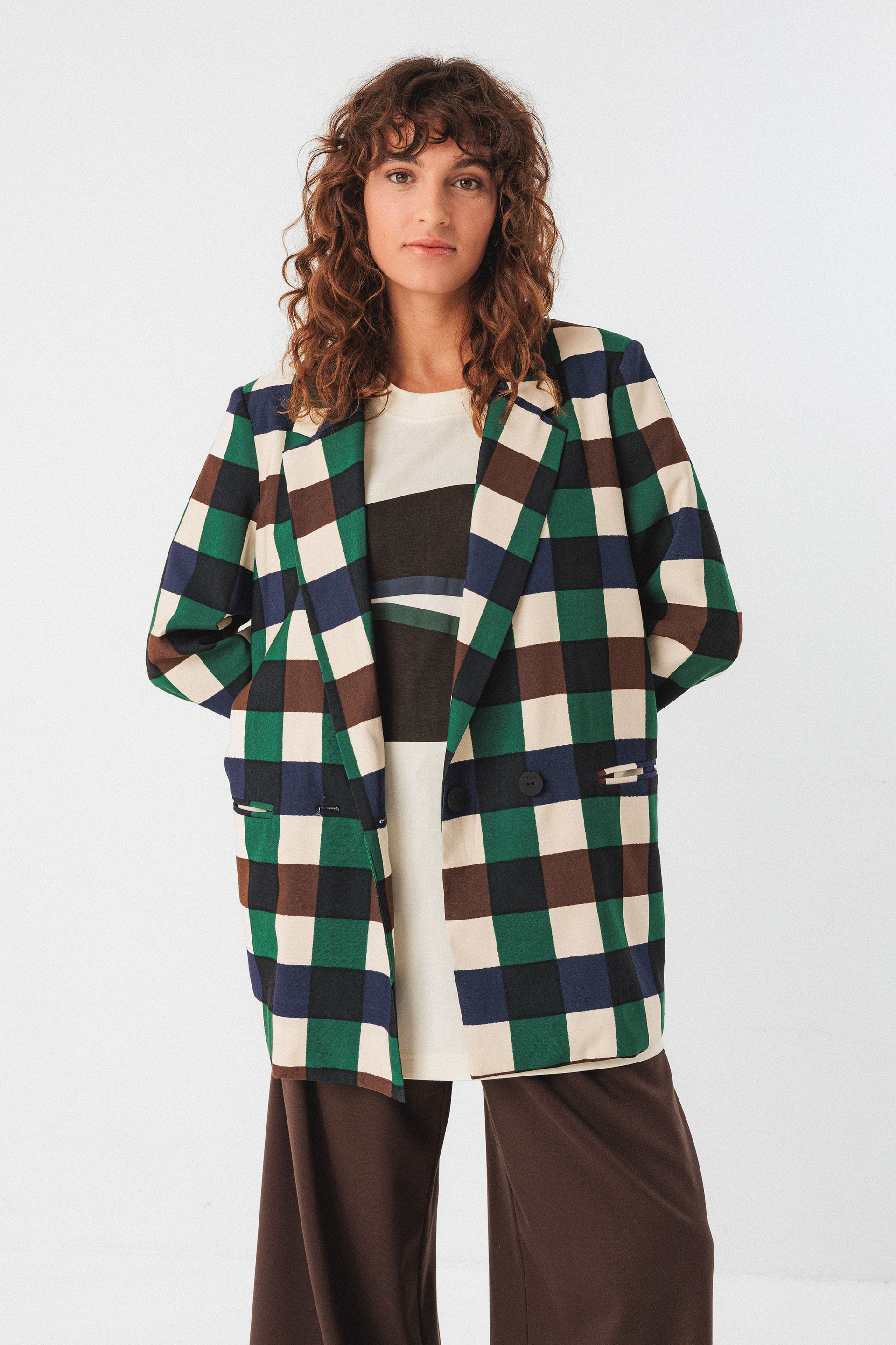 Longue veste blazer à manches longues et coupe droite, avec un col à revers. Boutonnée devant, elle présente des poches sur l’avant et une doublure intégrale.