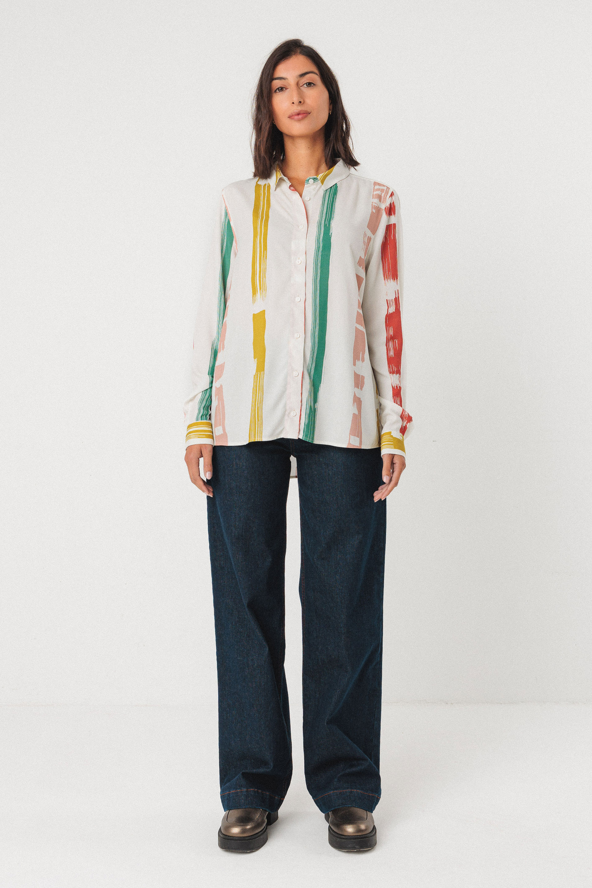 Chemise à coupe droite, col classique et manches longues, dotée d’une fermeture boutonnée devant.