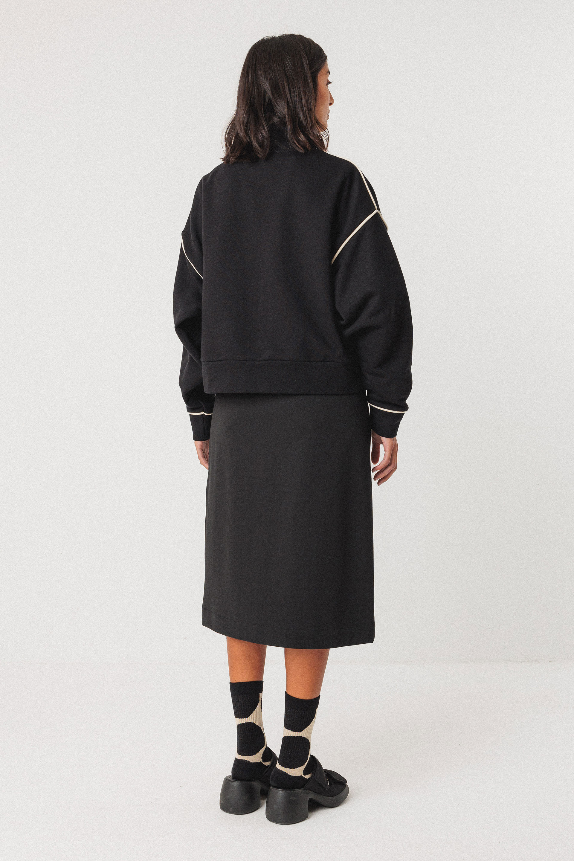 Sweat à zip intégral et coupe oversize, relevé de poches plaquées devant et de passepoils de couleur.