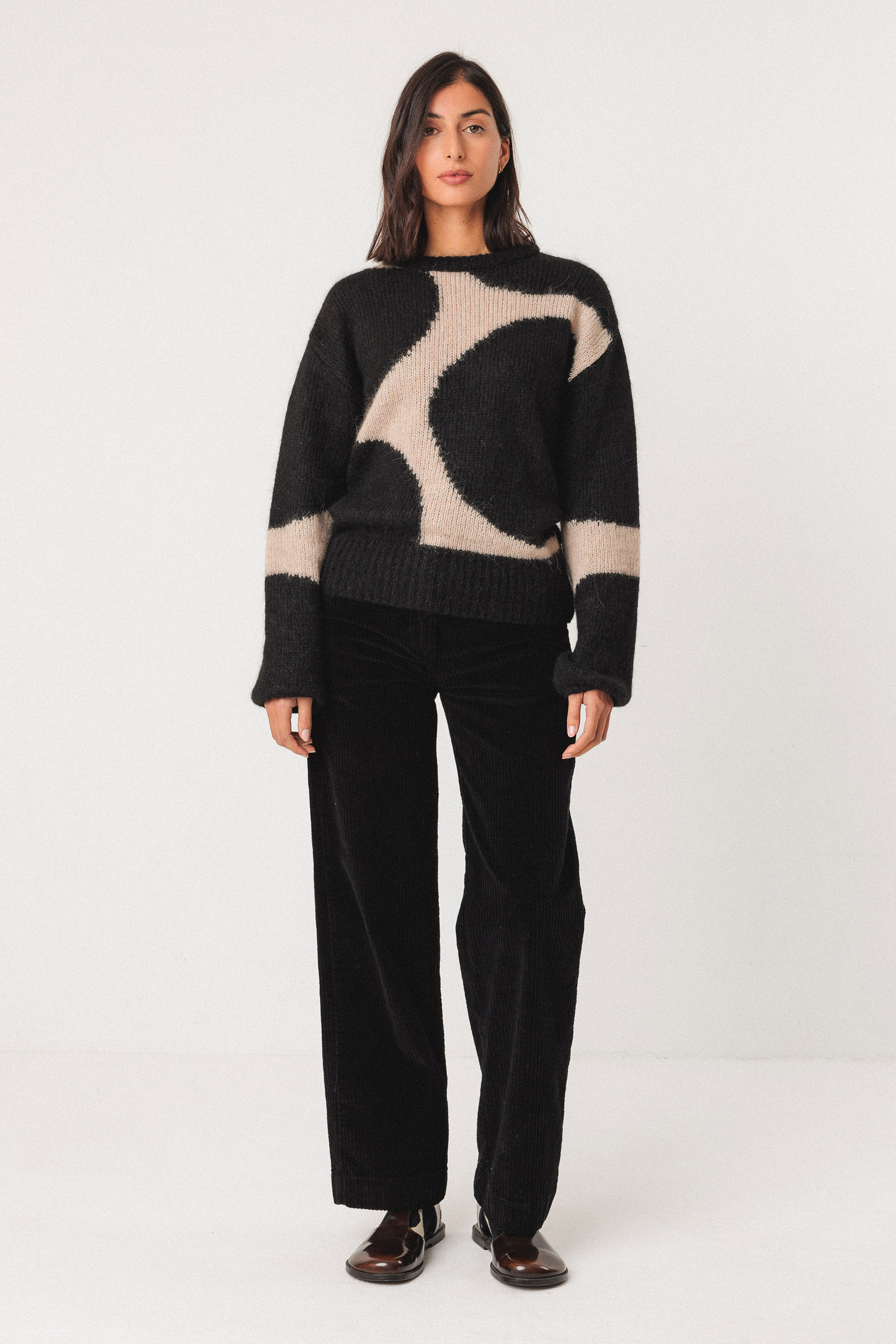 Pull en alpaca mélangé à base de fibres recyclées. Tricot d'épaisseur moyenne, col rond et manches longues. Confectionné au Portugal.