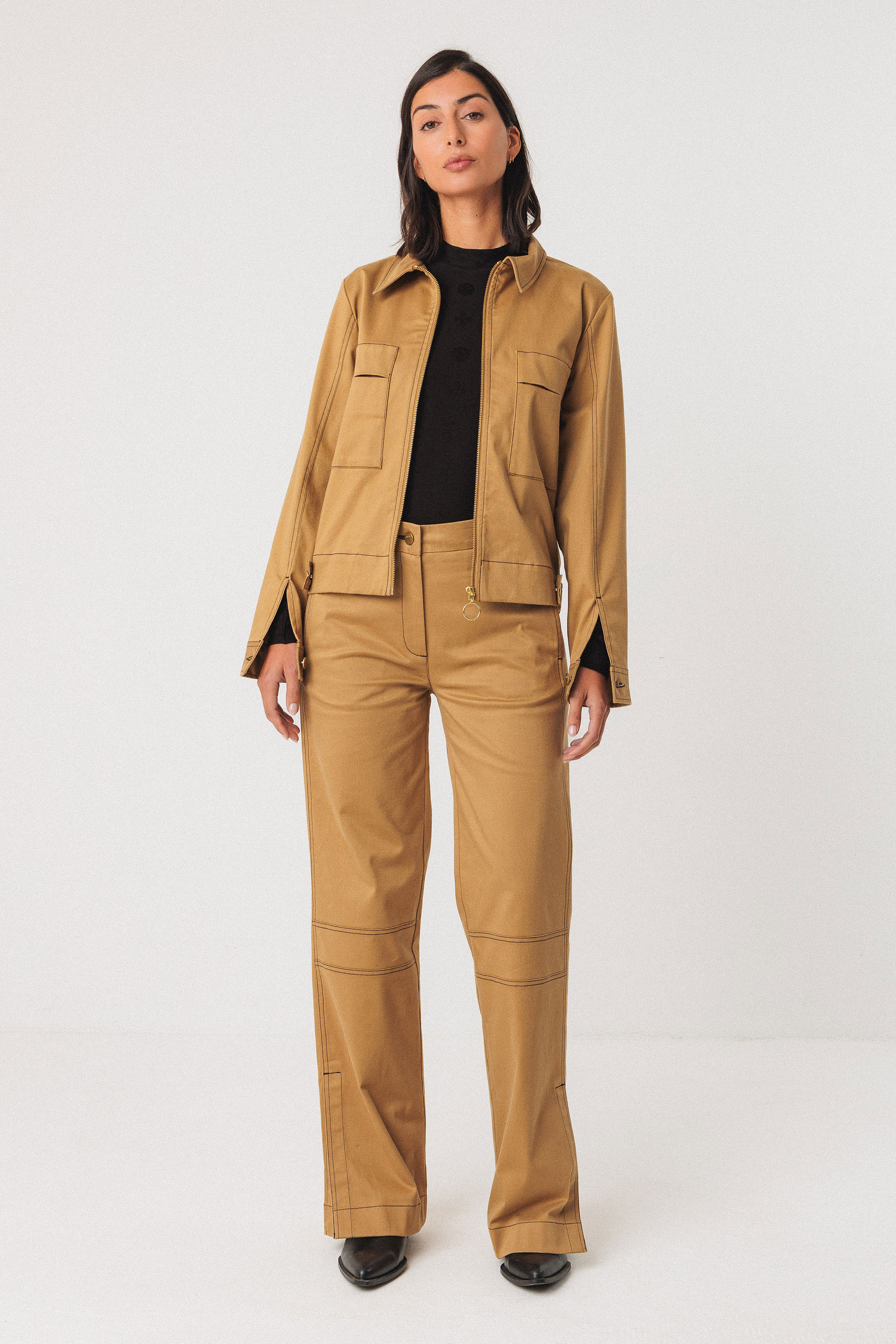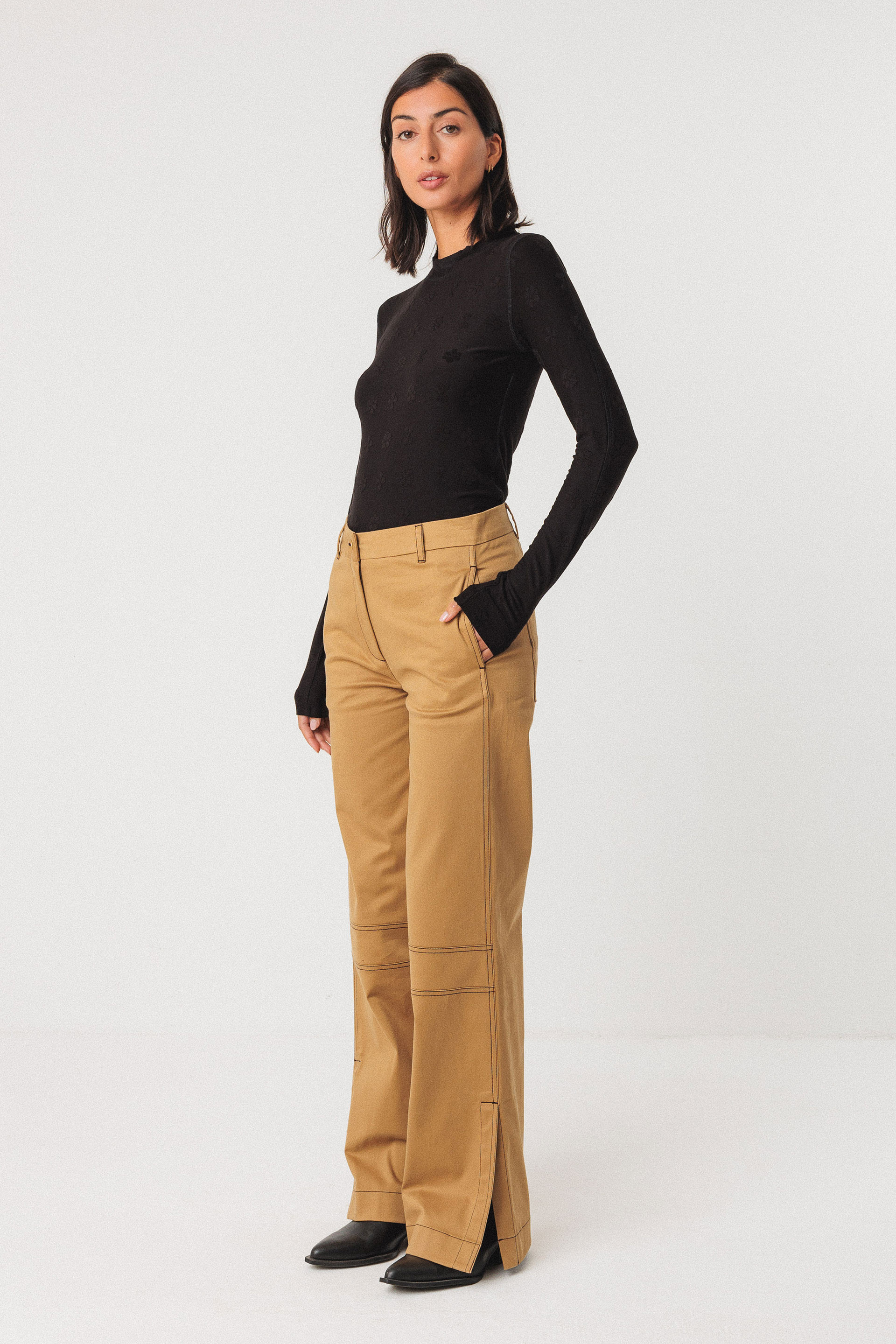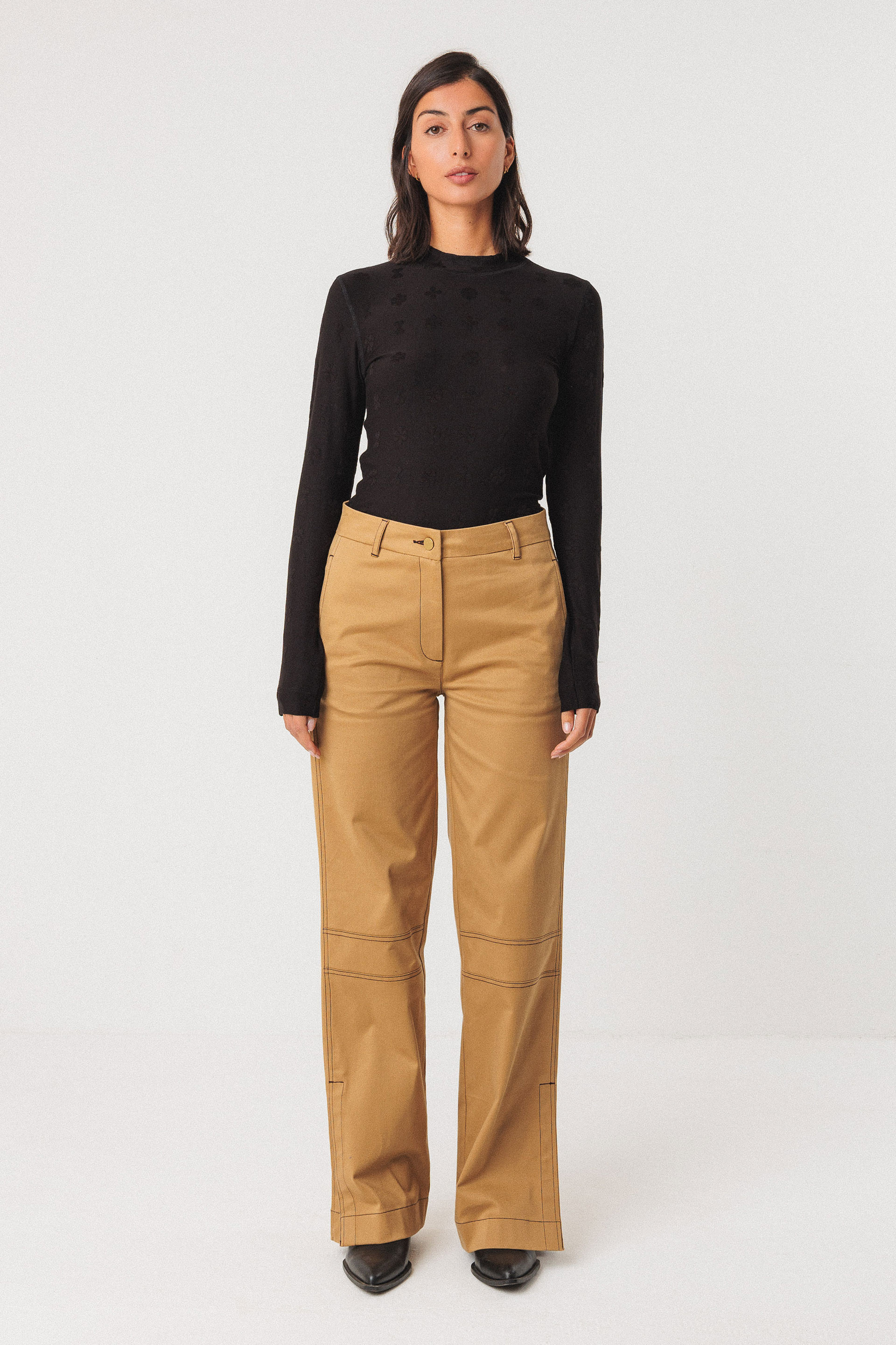 T-shirt ajusté avec un col montant et des manches longues, relevé d’une couture surjetée décorative.